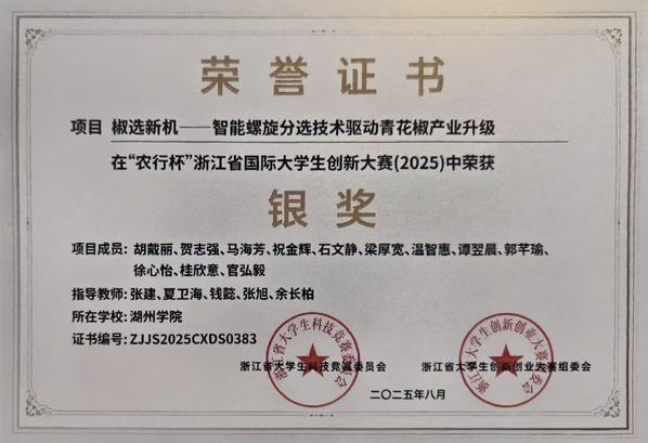 永利胡戴丽等同学在“农行杯”浙江省国际大学生创新大赛(2025)中荣获银奖
